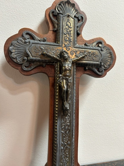 Antique French wooden + metal Crucifix - Religious Wall Decor - SOLD -